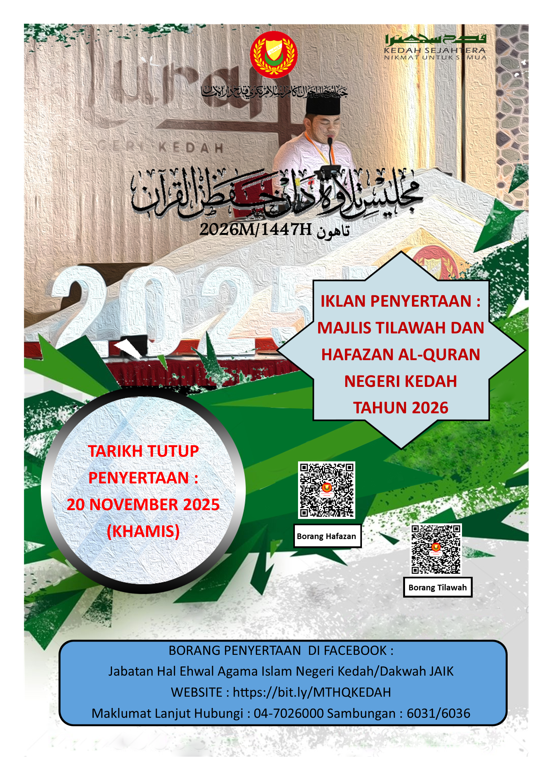 16 SEPTEMBER 2024 (ISNIN) APLIKASI AKHLAK RASULULLAH SAW DALAM MEMBANGUN NEGERI YANG SEJAHTERA ALOR SETAR – Demi memastikan keharmonian dan kesejahteraan Negeri Kedah Darul Aman, semua pihak perlu menjadikan setiap tingkah laku dan akhlak Nabi Muhammad SAW dapat diaplikasikan dalam kehidupan. Tuanku Raja Muda Kedah, Duli Yang Teramat Mulia Tengku Sarafudin Badlishah Ibni…