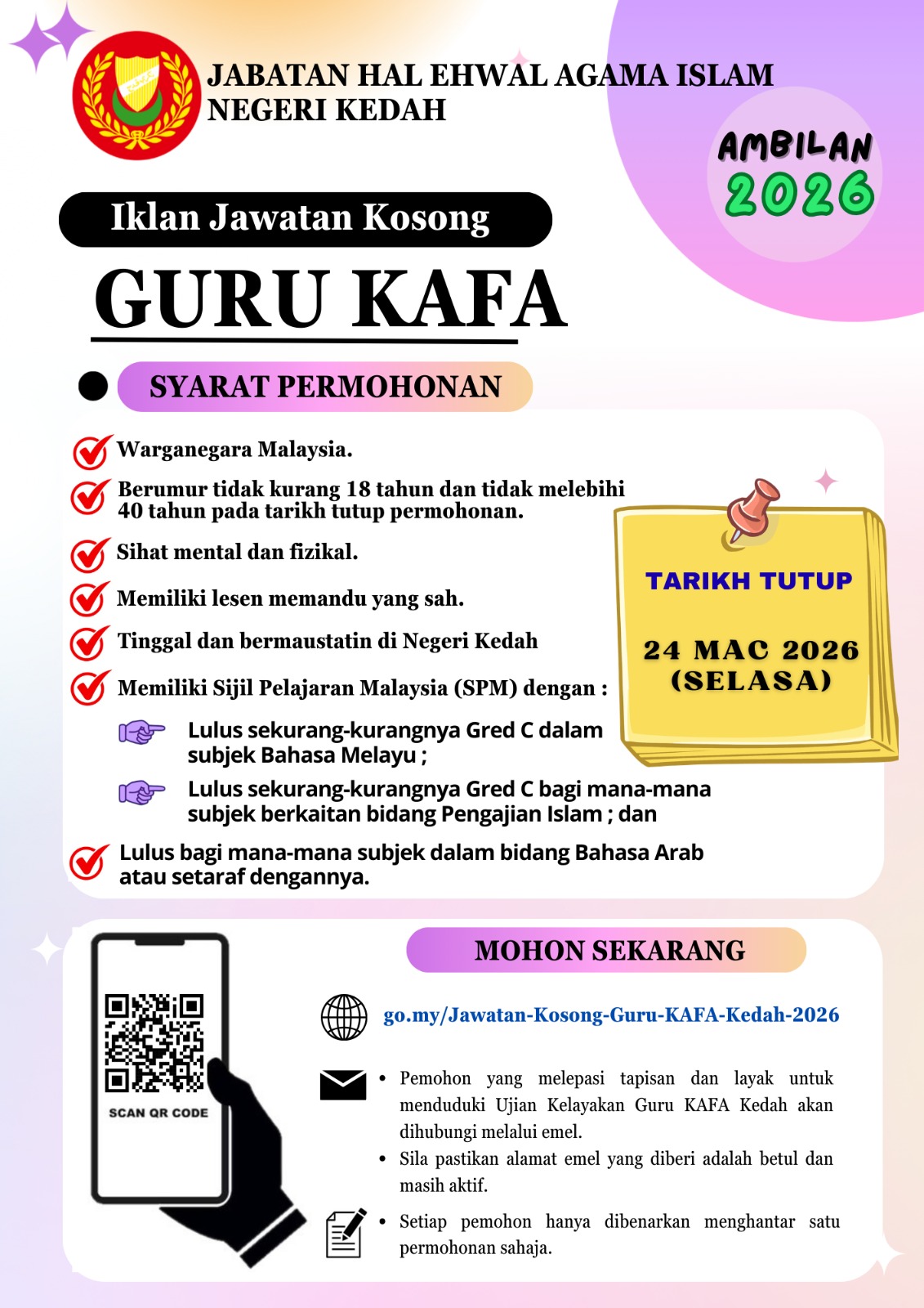 Tiada Kekosongan Jawatan Ditawarkan Buat Masa Ini.